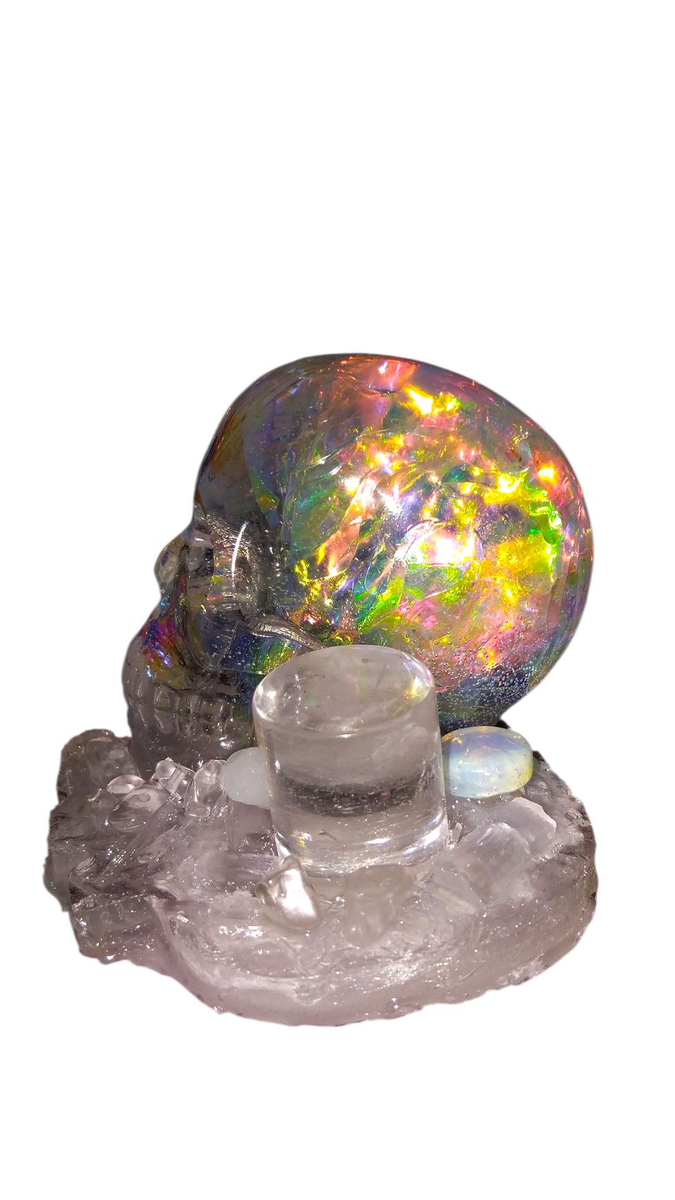 Crafted with lapis lazuli crystals and resin, this unique ornament features a gothic style skull shape, perfect for adding a touch of mystical charm to any room in your home. The striking blue colour of the crystals adds a pop of vibrancy to the overall design, making it a standout piece that is sure to catch the eye. This free-standing ornament from the United Kingdom is a one-of-a-kind addition to your home décor, ideal for those who appreciate the occult and the magic of crystals.